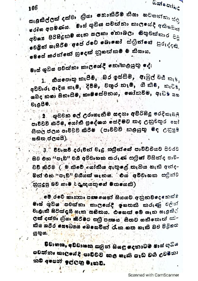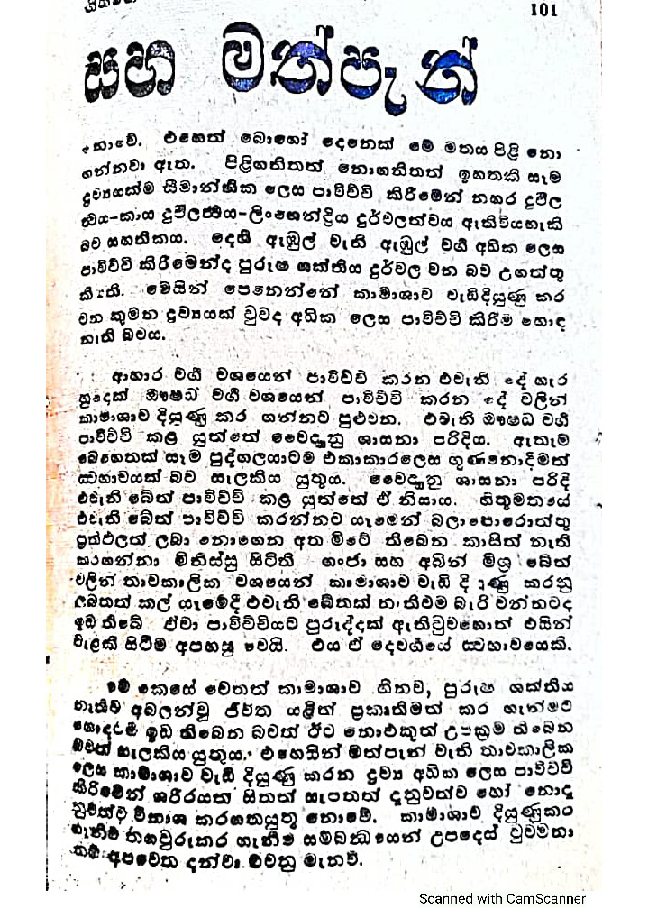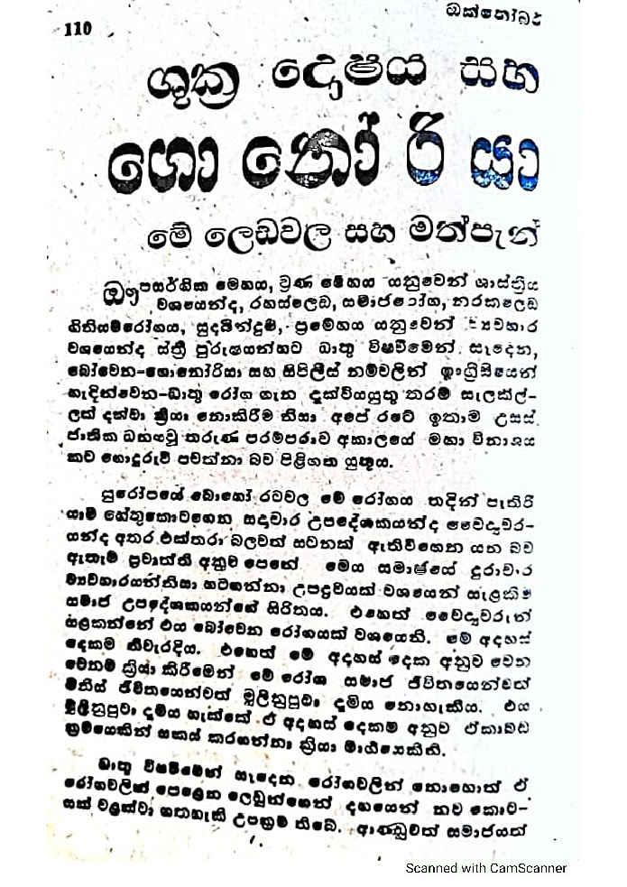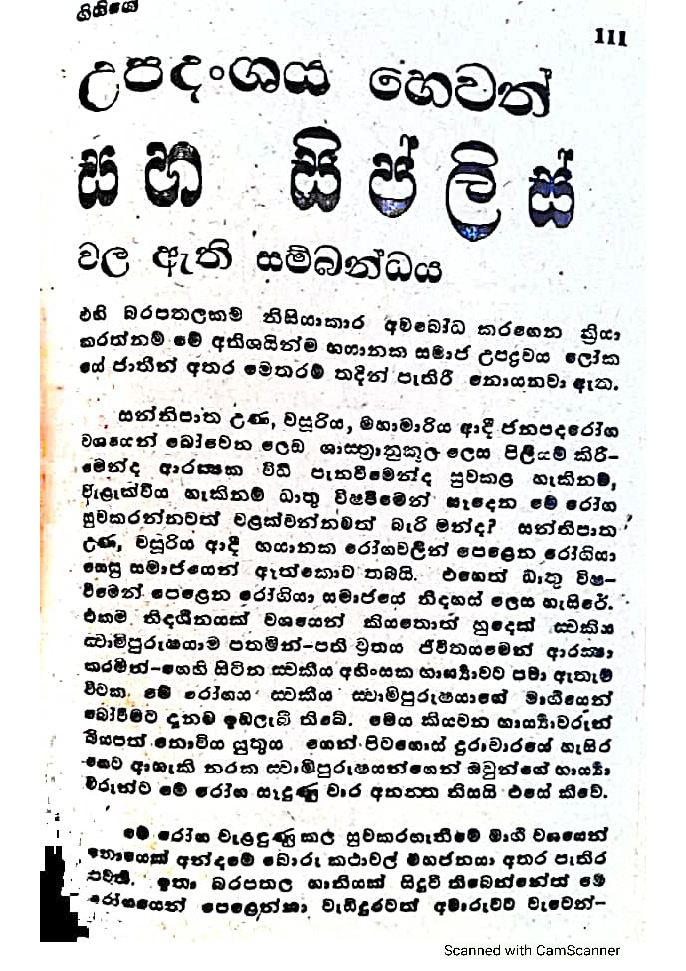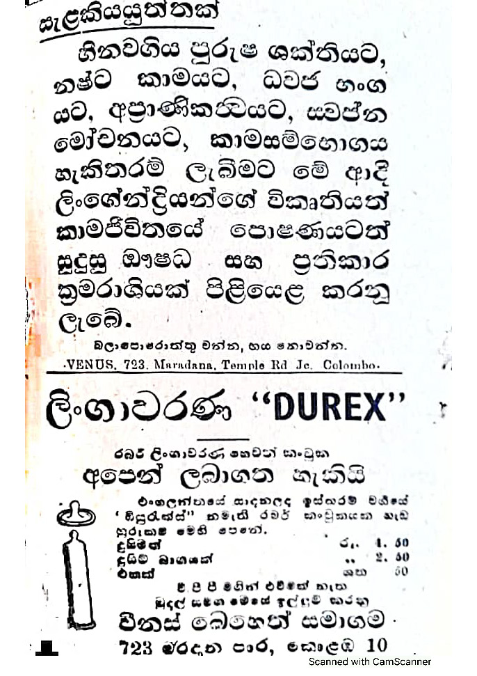 ගොනොරියා සිපිලිස් ආදී සමාජ රෝග ගැනත් කතා කරනවා. නරක ස්වාමි පුරුෂයන් නිසා පතිව්රතතාවය ආරක්ෂා කරන ගුනගරුක කාන්තාවන්ට පවා මේ රෝග වැළඳෙන බව කියනවා. බය වෙන්න එපා මේ අහන්න ලැබෙන දේවල් නිසයි එහෙම කීවෙ කියනවා.