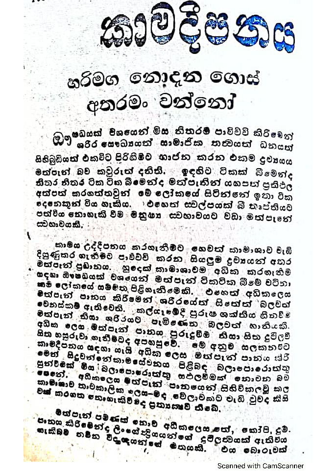 1948 ලංකාවෙ පළවුන කාම සඟරාවක්. මේක මාව සුරතාන්තගත කරපු වැඩක්. දිනෙත් මල්ලිකාරච්චි ශූරීන්ට ස්තුතිවන්ත වෙනවා මේක මාවෙත තැපැල් කිරීම ගැන.