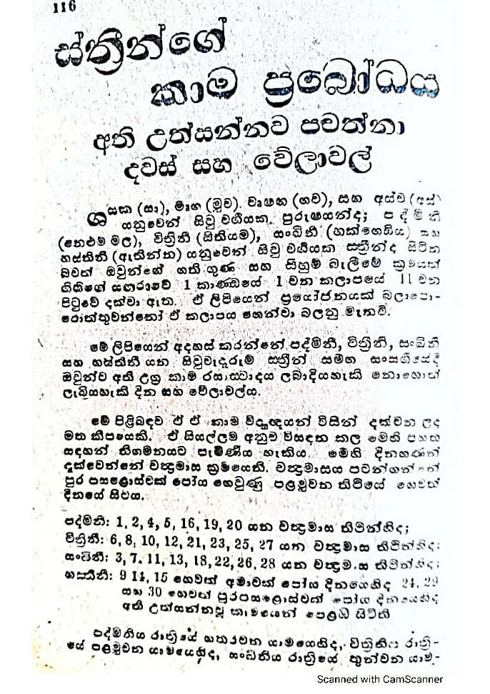 මේ කාම ශාස්ත්රය ජ්යොතිශයත් එක්ක හොඳටම ගැටගැහිලා තිබුණු වගක් පේනවා. ඒත් අසූ ගනන් වල කාම පත්තර රැල්ලෙ මේ නැකැත්බලි විශ්වාස තිබුනෙ නෑ.