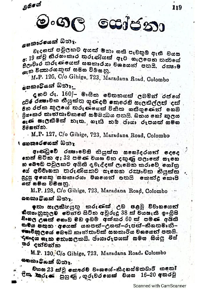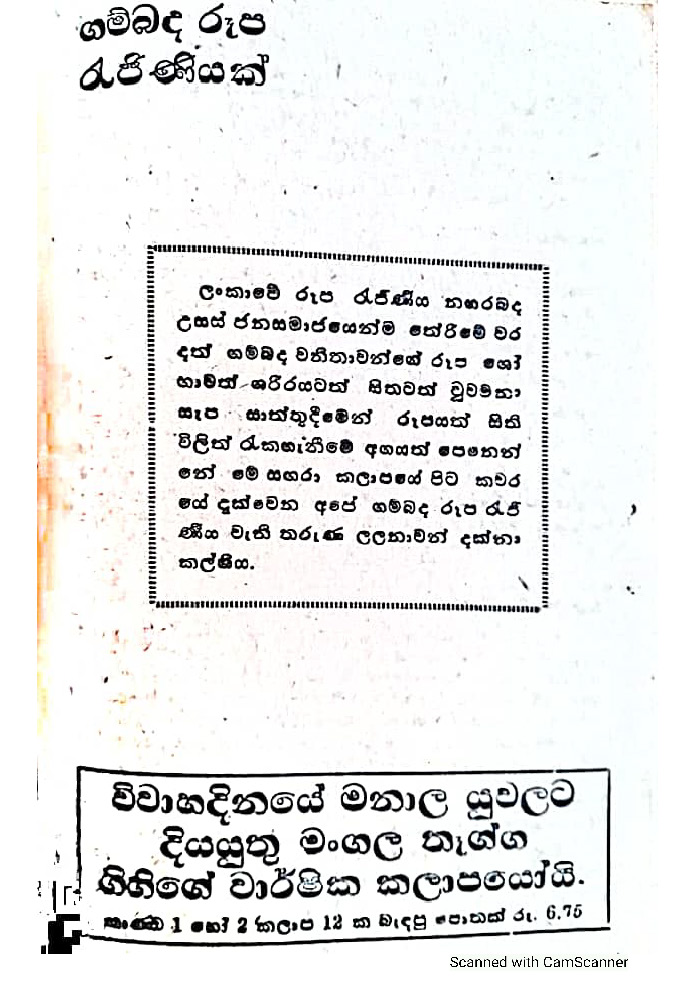 විවාහ දිනයේදී යුවළකට තෑග්ගක් විදිහට දෙන්න හොඳම ගිහිගේ වාර්ෂික කලාප එකතුවක් කියලත් සඳහන් කරනවා. මොනවා වුනත් ඇඩ්වර්ටයිසින් පැත්ත නම් හොඳටම කරලා තියෙනවා. හැම පිටුවකම මොනවා හරි විකුණනවා.